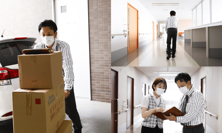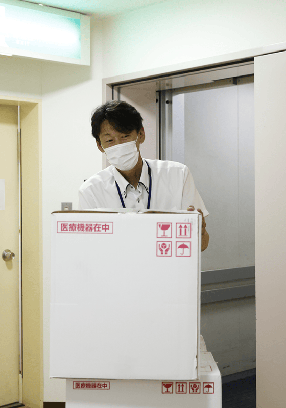 「〇〇さん、おはようございます!ご依頼のものを持ってきました」。病院に到着したら、まずは担当の看護師さんやスタッフさんにご挨拶。何気ない会話も重要なコミュニケーションのひとつです。納品後、次の訪問先へ。