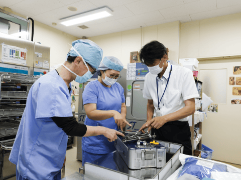 手術を終えたドクターと術後状況の振り返りを行い、来週以降の手術予定を最終確認。特殊な器械が必要な場合は、メーカーへ先行手配を進め万全の準備を整えます。