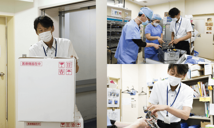 納品業務、使用済み器械の引き上げ、手術打ち合わせ